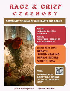Join us for a day of connecting with often uncomfortable energies of rage and grief. We will gather in community to witness and move through these energies in a time-limited, resourced space.